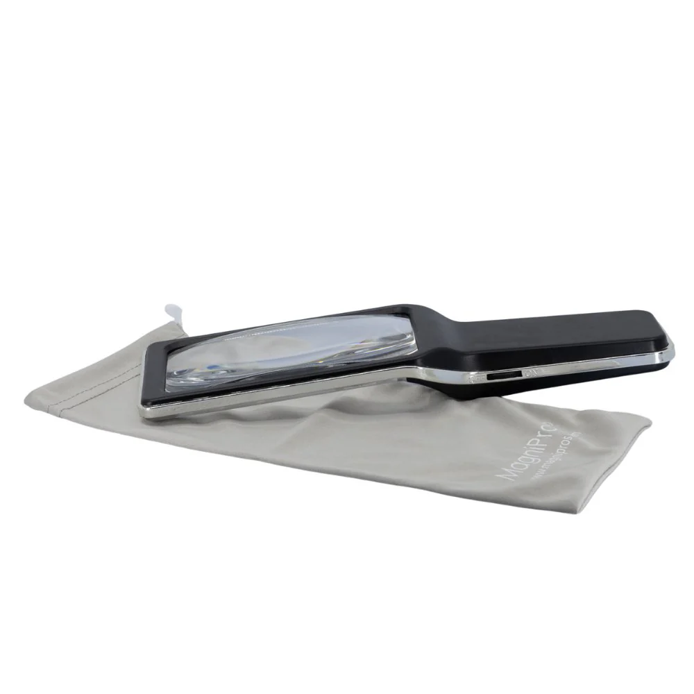 One of our best-selling magnifiers, this Handheld Magnifier offers exceptional clarity and functionality for everyday use. Equipped with 10 dimmable anti-glare LED lights, it provides an evenly lit field of view, making it ideal for those with low vision. The magnifier’s lightweight design and balanced handle ensure comfort during extended use, while the easy-to-use dimmable wheel switch allows you to adjust the brightness to your preference. Built to be reliable and durable, this magnifier is sure to become a go-to tool in the low vision sector.