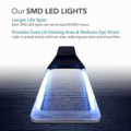 - LED Lights: 10 dimmable, anti-glare LEDs